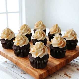 All cupcakes except Red Velvet, Chocolate Salted Caramel, and Chocolate with Vanilla Cream Cheese Frosting are made with Oat Milk, which is dairy-free, nut-free, and soy-free. Red Velvet, Chocolate Salted Caramel, and Vanilla Salted Caramel contain heavy cream.